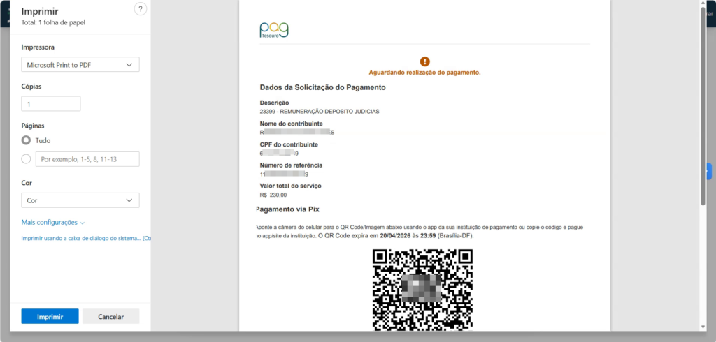 Se você preferir guardar um comprovante da guia gerada antes de pagar, pode clicar na opção de imprimir.
