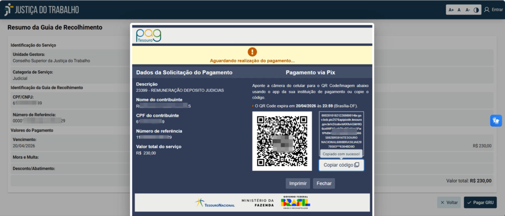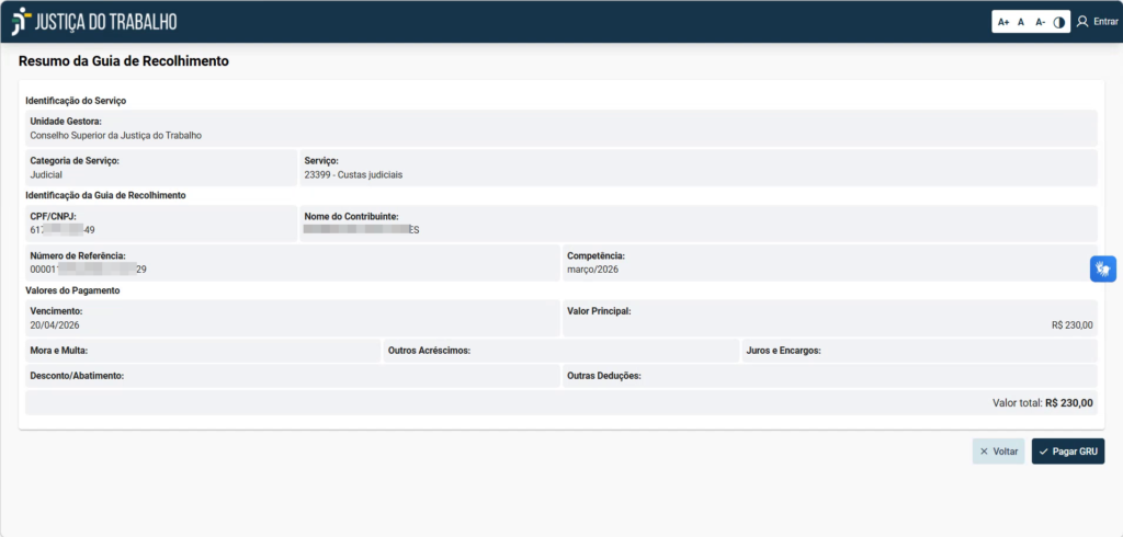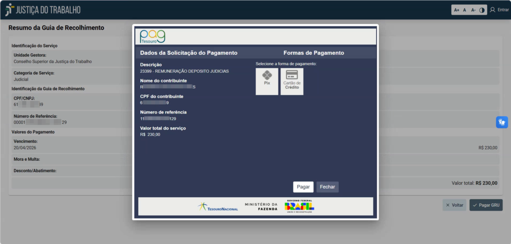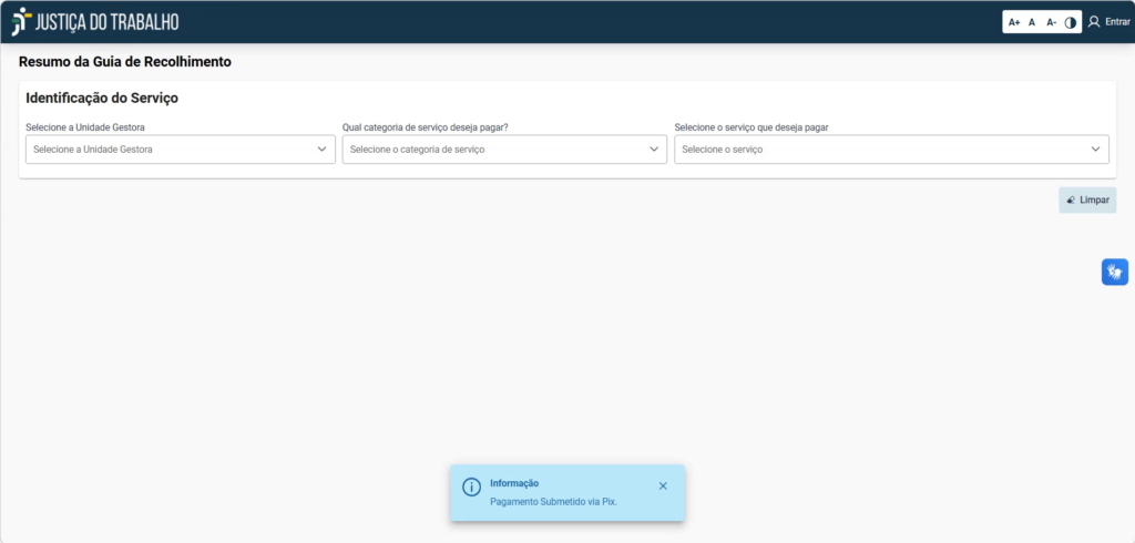 Este guia foi criado para ajudar você a emitir e pagar a sua Guia de Recolhimento da União (GRU) de forma rápida e segura através do sistema da Justiça do Trabalho, utilizando a opção de pagamento via Pix ou cartão de crédito (PagTesouro).